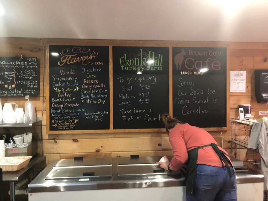 The eastern side of Connecticut is charming farm land with red barns, rolling hills and plowed fields. Along the way we drove toward Sterling and saw a sign for Ekonk Turkey Hill Farm Ice Cream and decided to take a diversion.
