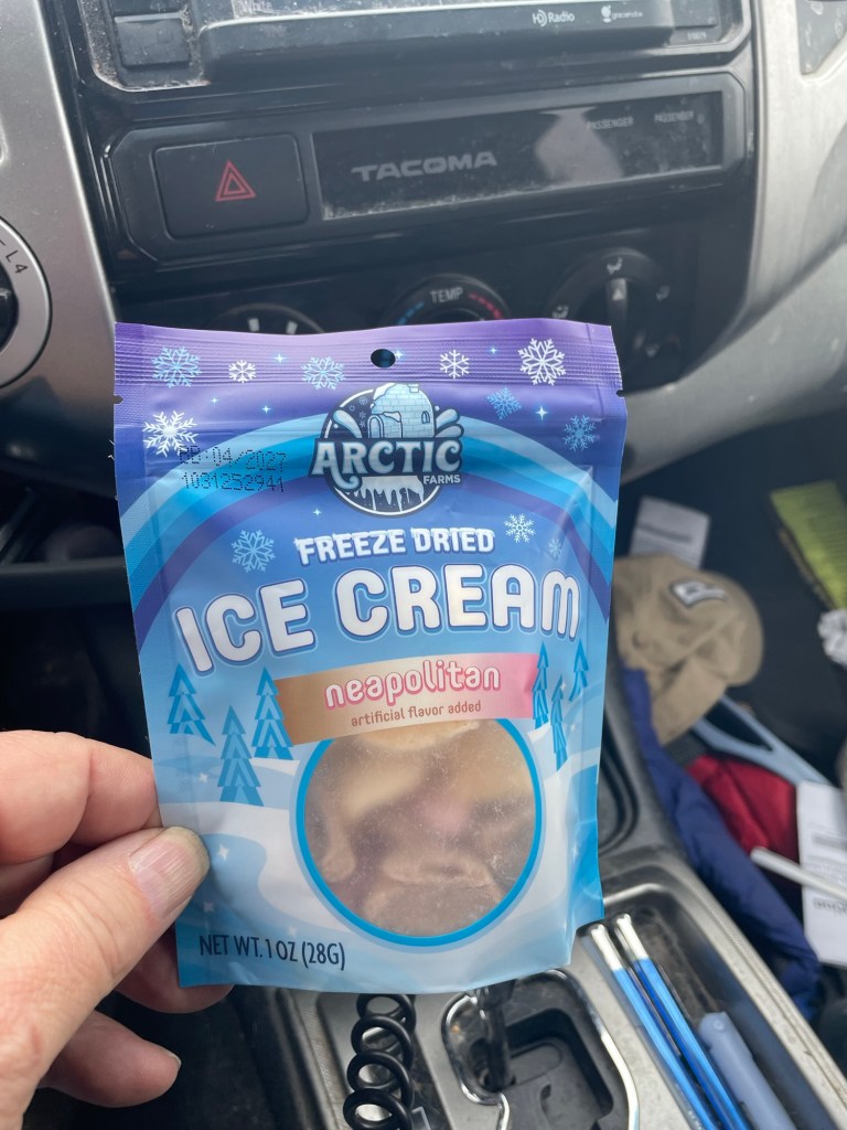 On my way home today I stopped near the center of town and enjoyed some dehydrated “astronaut” ice cream, which went snap, crackle, pop and just how I remembered it from my childhood. Much to my surprise “astronaut” ice cream was created by the Whirlpool Corporation for NASA, although I am not sure if it was ever used on any of the Apollo missions.