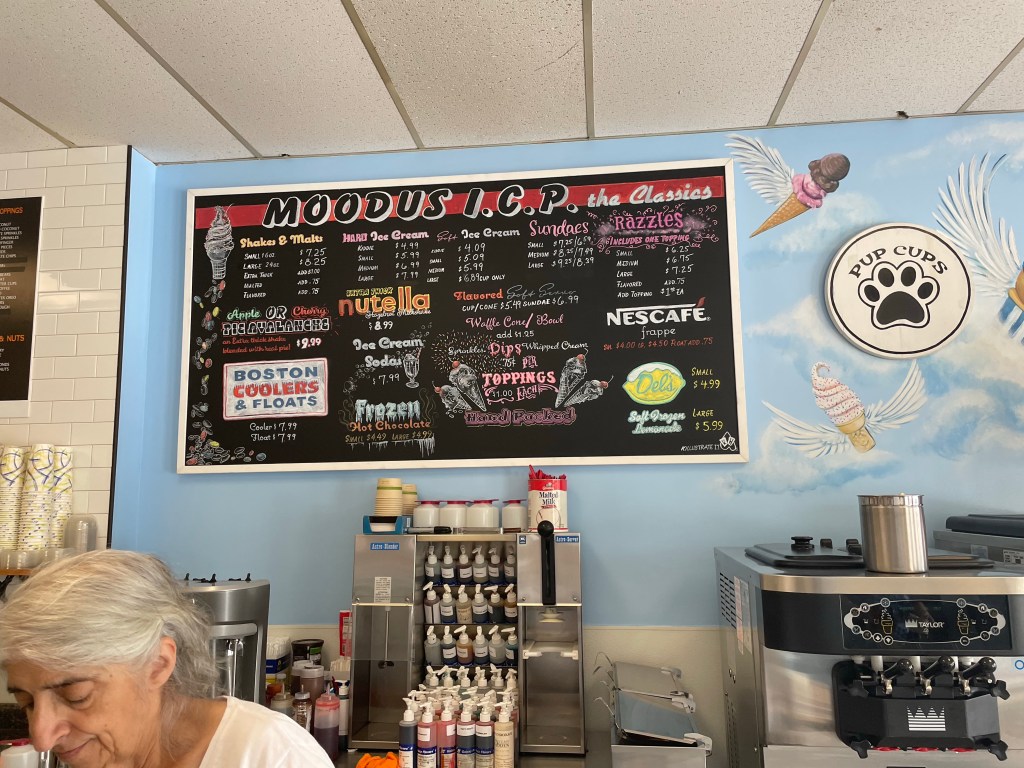 I was hot so I stuck with basics and had a nice, thick, creamy coffee milkshake with a scoop of chocolate ice cream. I also splurged and had a Del’s lemonade to wash it down and both hit the spot! The Moodus Ice Cream Parlor was packed with lots of kids and moms, probably just getting out of school. they serve a variety of hard ice cream and soft serve in cups or cones. They make shakes and floats and had a crazy list of sundaes that someone named Maureen would have loved to try,