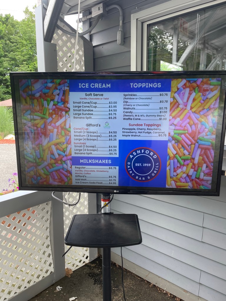 With Maureen working today I headed north to a poetry reading and stopped along the way in the beautiful, rural town of Ashford at the Ashford Dairy Bar & Grill for a mid-day treat. The Dairy Bar had both hard ice cream and soft serve. They make sundaes and offer cups and cones, although they don’t have the broadest selection of flavors.