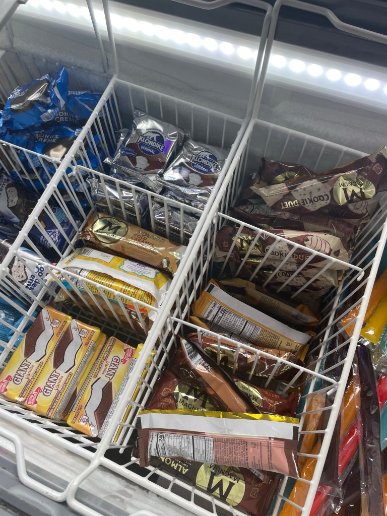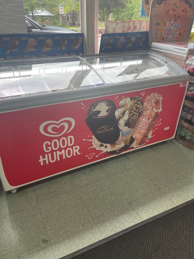 The Store sells all the basics anyone would need and several varieties of ice cream for those needing a fix. There is an upright cooler with pints of multiple flavors of Ben & Jerry’s, a well known commercial product from southern Vermont. In addition they have drumsticks, popsicles, Good Humor bars, ice cream sandwiches, Snickers and Reese’s, and one of my all time faves, Klondike Bars.