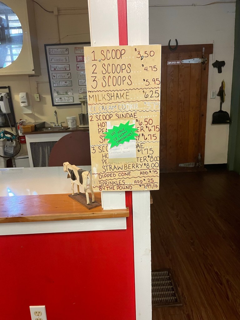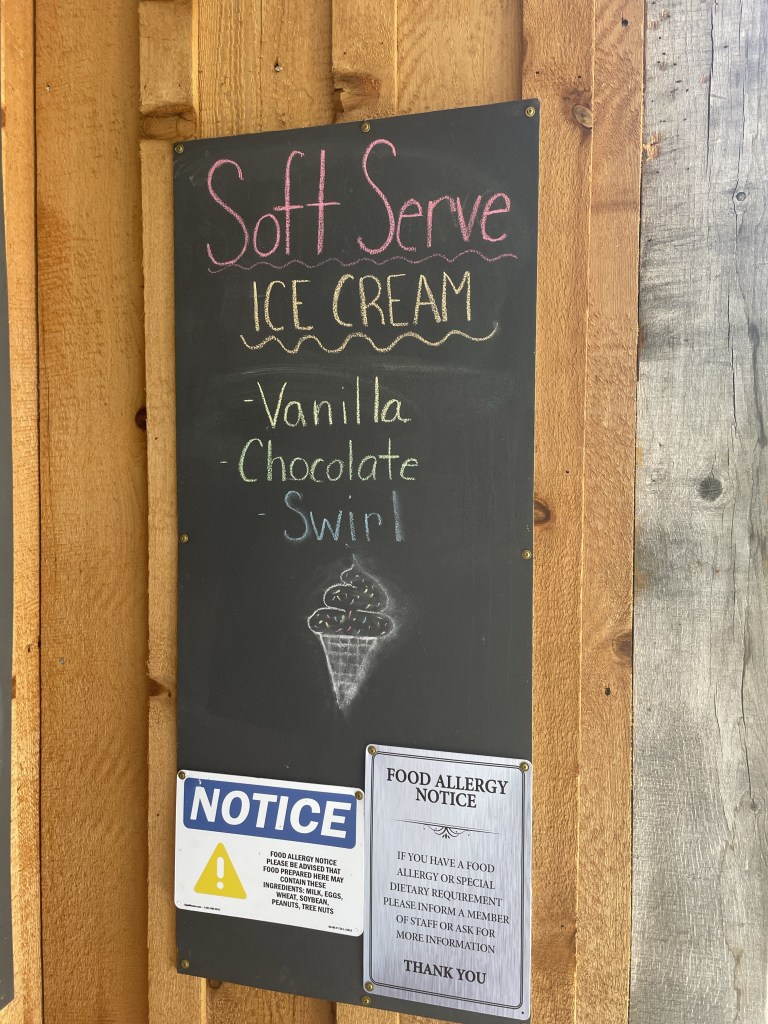The ice cream shop offers a wide variety of flavors, all made on site with the freshest ingredients you can imagine. They offer both hard packed ice cream and soft serve and all the regulars…cups, cones, sundaes, pints, cakes and ice cream sandwiches and they have a good mix of toppings. Their prices seem a bit on the high side but your paying for this farm fresh product!