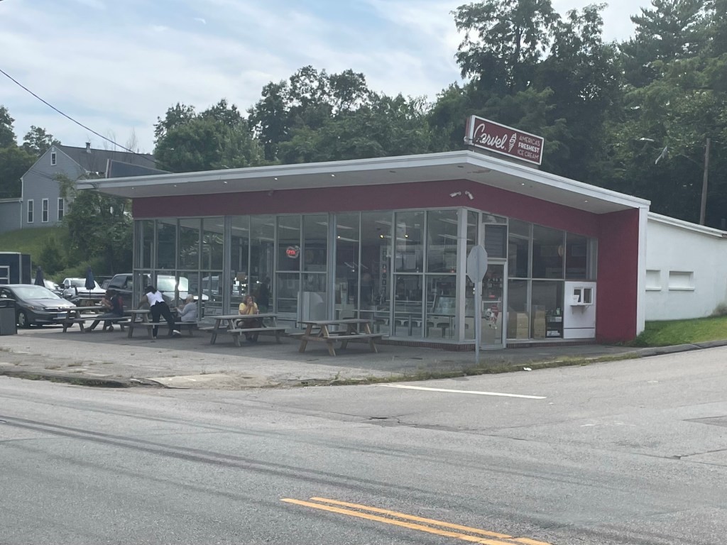 The Carvel ice cream shop in Torrington is a classic venue with a take out counter, some counter and stools and picnic tables out front. They serve a very rich, creamy soft serve according to Maureen and a variety of hard, scooped ice cream. They are well known for their cakes, sandwiches and sundaes!