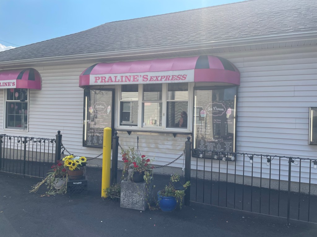Pralines in Plainville is a family run shop. Kathleen, daughter of the former owner was our host and gave us the history of this local landmark. They have a long list of soft serve and hard ice cream flavors. They offer cups and cones, sundaes and lots and lots of cakes!