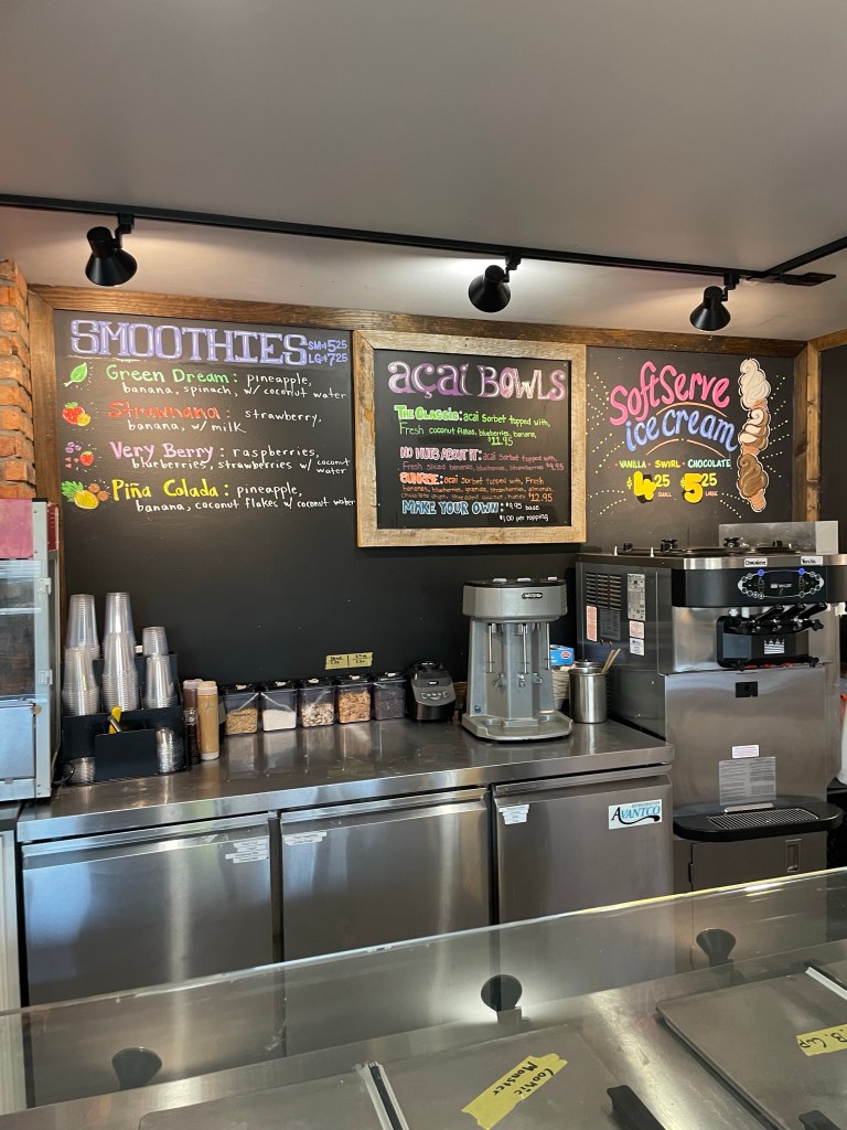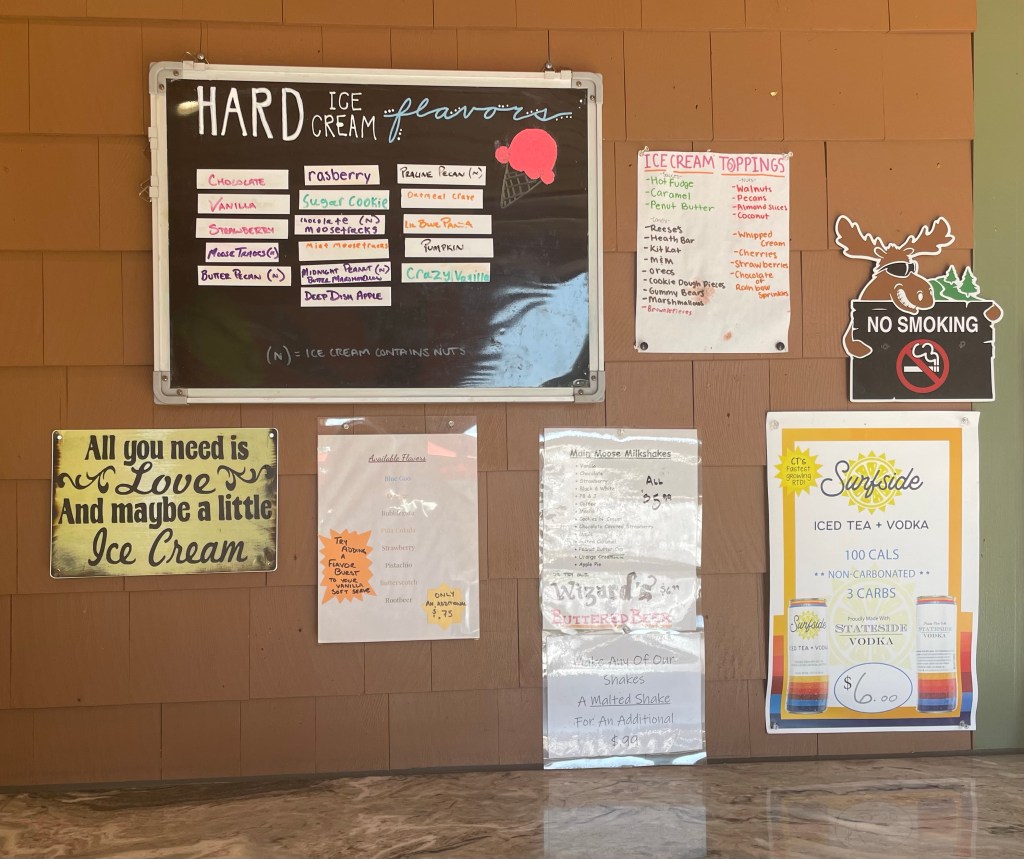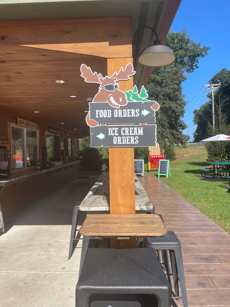 The Main Moose is a charming, rustic place that serves ice cream and meals. They have a take out window and lots of outside seating. I was greeted by Ruthie, a delightful person behind the counter who made a fantastic coffee milkshake with a splash of chocolate.